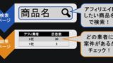 売りたいサービスや商品のアフィリエイト案件がどこのASP業者にあるか一括検索できます。
